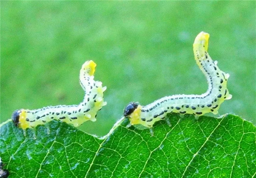 An den Blättern fressen im späten Frühjahr und Sommer gesellig lebende Larven. Sie sind auffällig grün und gelb oder blaugrün und rotbraun gefärbt. Blattwespenlarven können innerhalb kurzer Zeit Kahlfraß verursachen.
