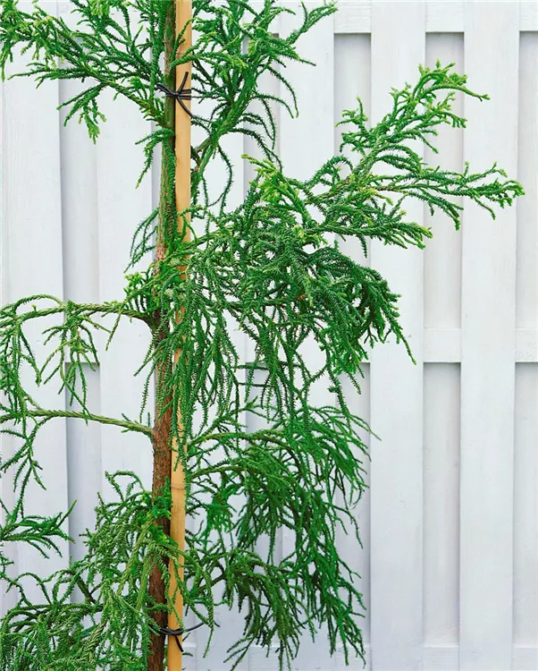 • Diese Pflanze ist schneedruckgefährdet. In schneereichen Gegenden empfiehlt es sich daher, die Zweige mit einer Schnur zu umwickeln. Andernfalls können diese auseinander klappen und sich möglicher Weise nicht mehr vollständig erholen. Wenn die Schneesaison vorbei ist, müssen die Schnüre natürlich wieder entfernt werden.