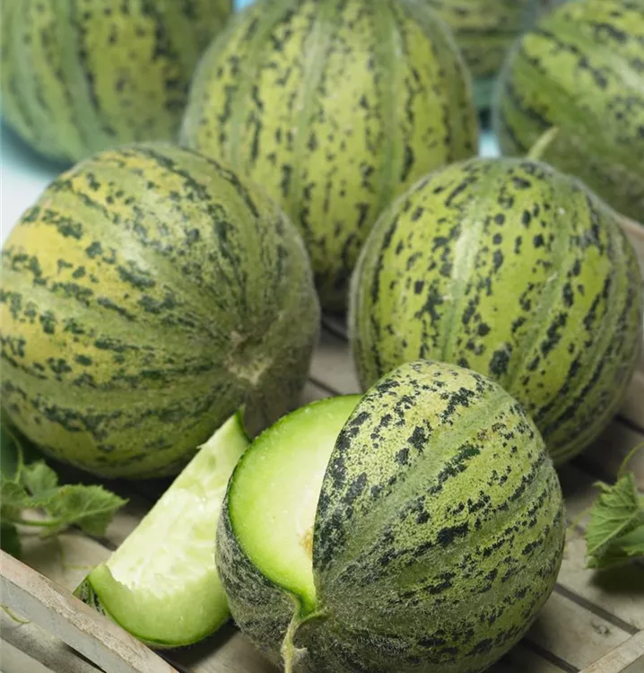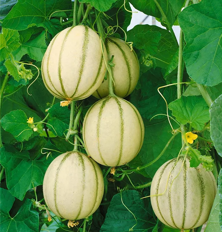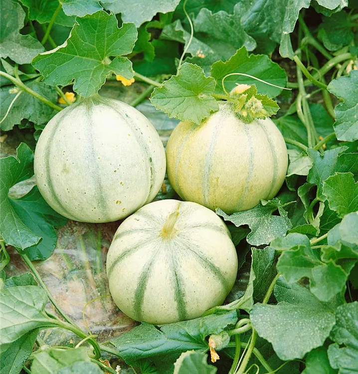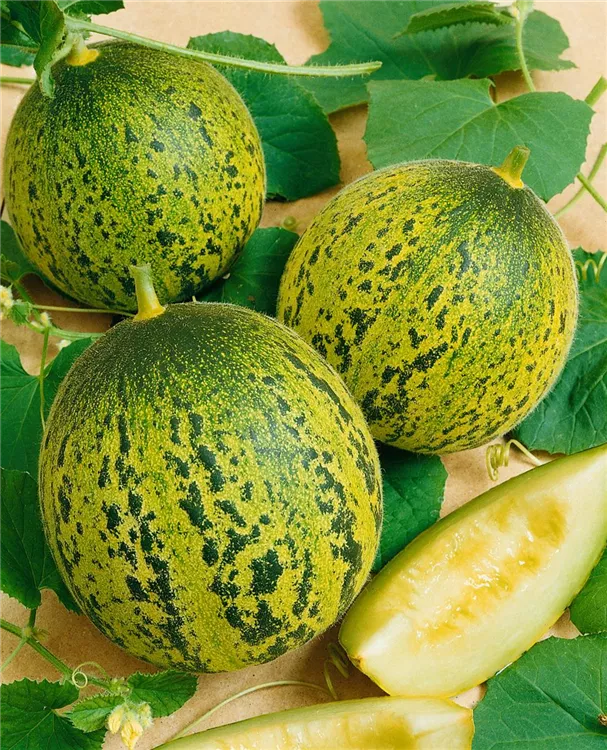 Die Zuckermelone (Cucumis melo) bildet Früchte, die süß schmecken und bereits ab Juli geerntet werden können. Für das optimale Wachstum der Zuckermelone werden ein sonniger Standort und durchlässiger, nährstoffreicher Boden benötigt.