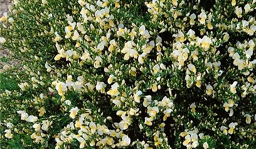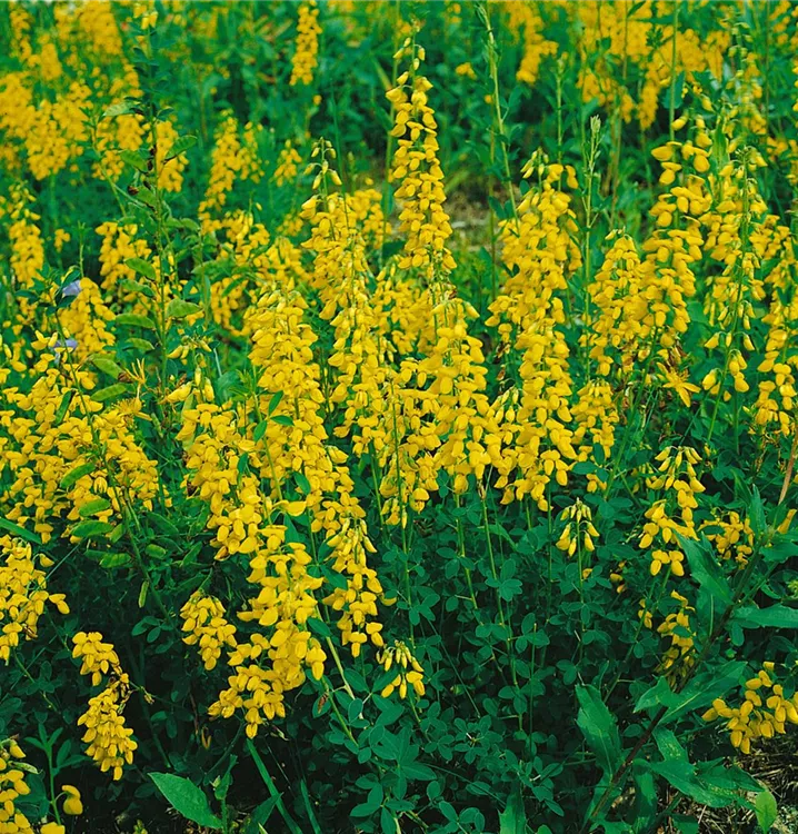 Der Geißklee (Cytisus) eine Gartenpflanze, die, je nach Sorte, Blüten in verschiedenen Farben hervorbringt.