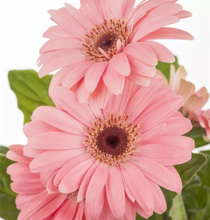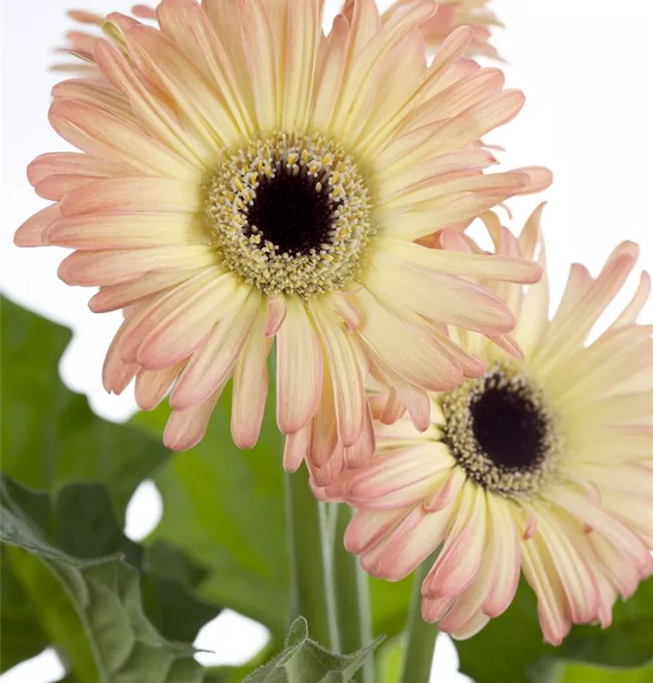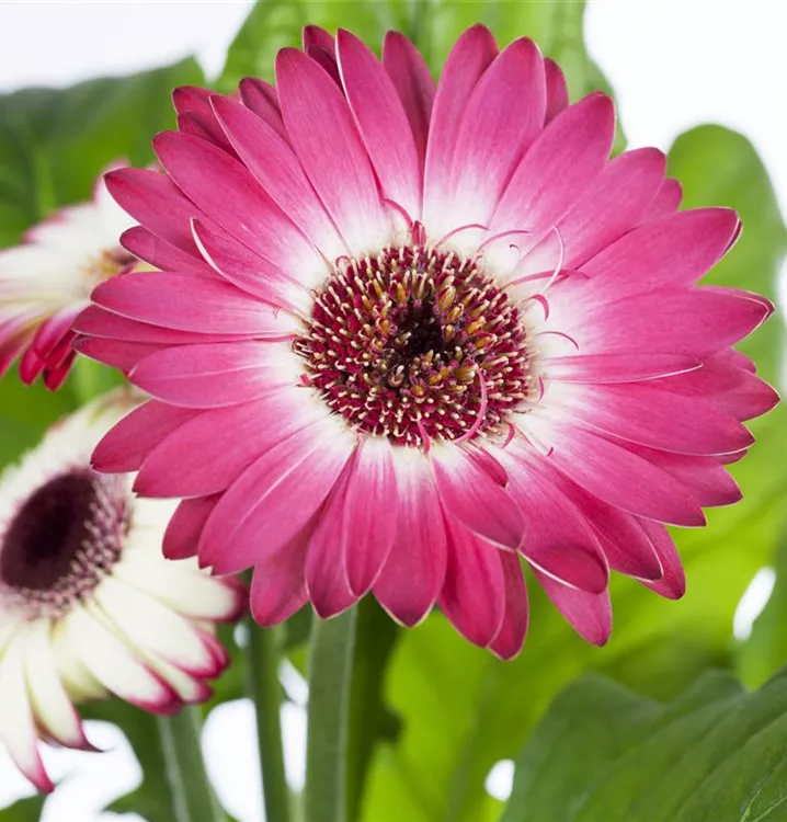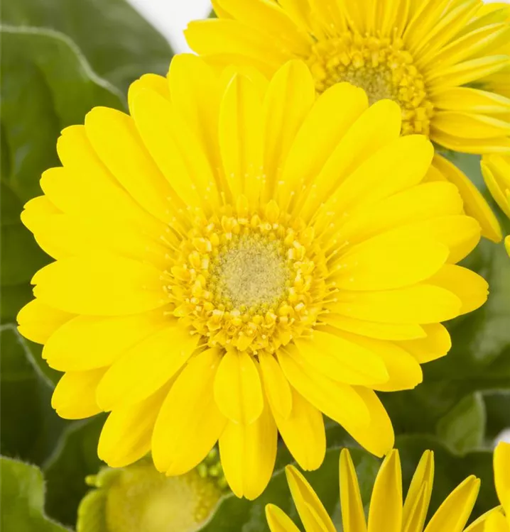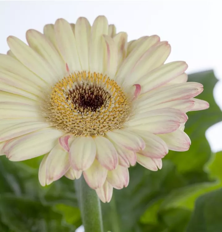 Die sommergrünen Blätter der Gerbera sind dunkelgrün, lanzettlich, gelappt.