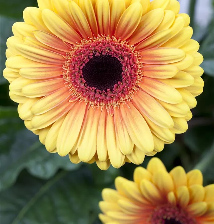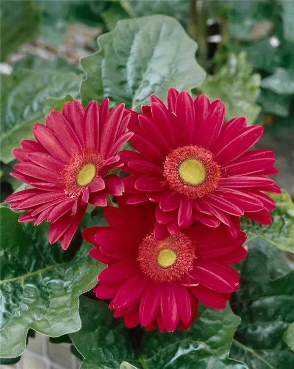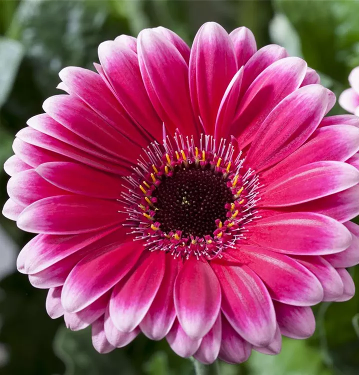 Die Gerbera (Gerbera) ist eine rosettenartige Staude, die, je nach Sorte, körbchenartige Blüten in verschiedenen Farben bildet. An einem sonnigen, windgeschützten Standort mit durchlässigem, nährstoffreichem Boden erreicht sie gewöhnlich eine Höhe von ca. 50 cm und wird ca. 30 cm breit.
