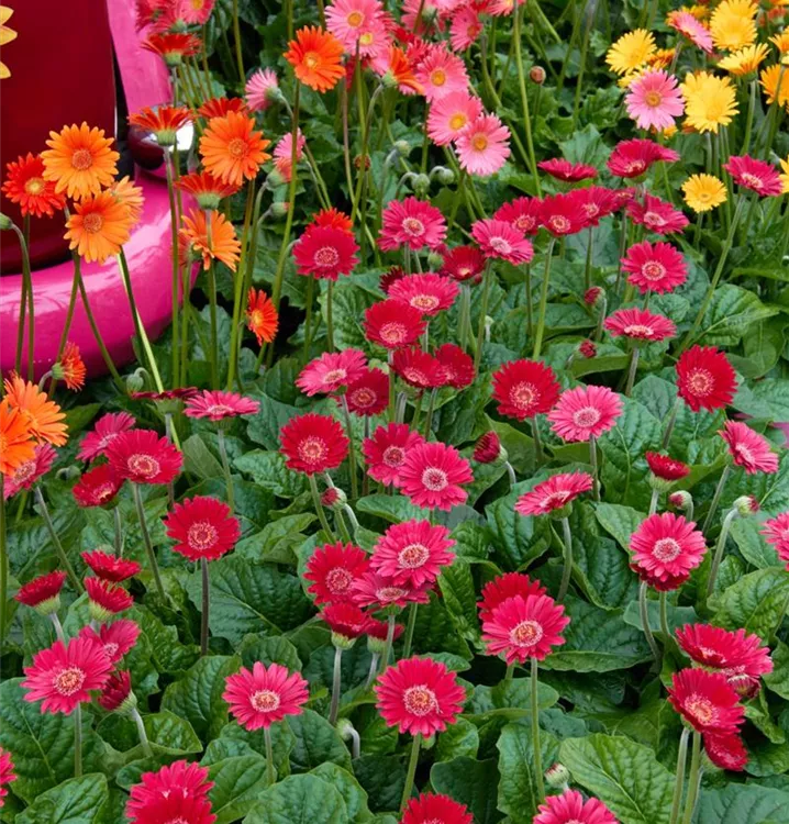 Die Winterharte Gerbera Garvinea<sup>®</sup> (Gerbera 'Garvinea'<sup>®</sup>) blüht über Monate hinweg. Je nach Sorte, erscheinen die dekorativen Blüten in den Farben Weiß, Rosa, Rot und Orange. Die mittelgrünen, lanzettlichen, glänzenden Blätter sind gelappt. Bevorzugt wird ein sonniger bis halbschattiger Standort und eine durchlässige Erde.