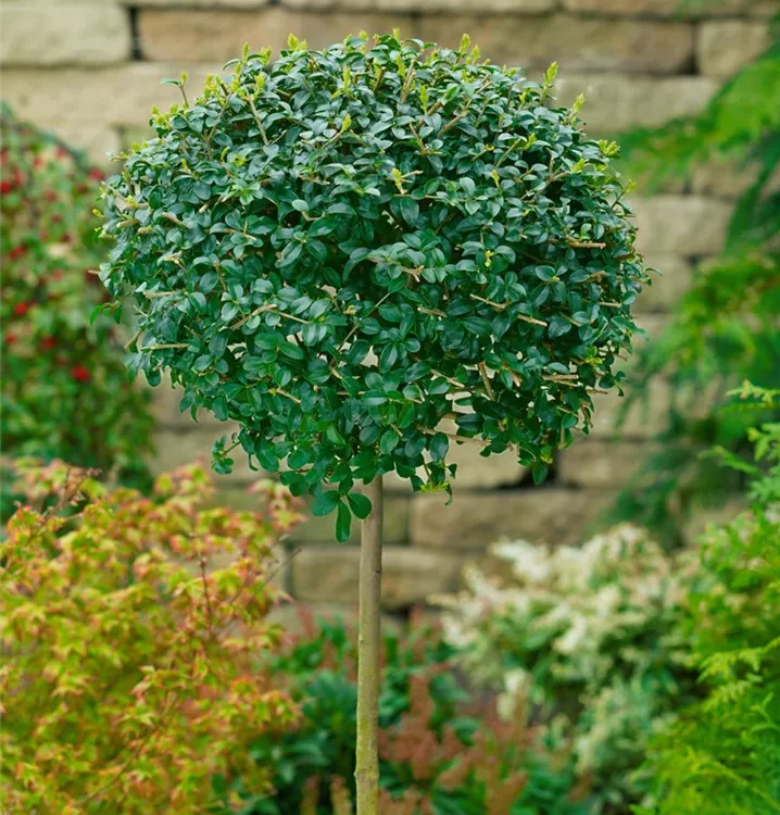 Der Kugel-Liguster (Ligustrum jonandrum) ein dichter, kompakter Strauch, der, je nach Sorte, Blüten in verschiedenen Farben hervorbringt. An einem sonnigen bis halbschattigen, windgeschützten Standort mit durchlässigem, nährstoffreichem Boden erreicht er gewöhnlich eine Höhe von ca. 2 m und wird ca. 2 m breit.