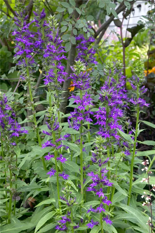 Die Lobelie (Lobelia x speciosa) ist eine aufrechte Staude, die von August bis September rote, purpurrote, violette, blaue Blüten bildet. An einem sonnigen bis halbschattigen Standort mit durchlässigem, nährstoffreichem Boden erreicht sie gewöhnlich eine Höhe von ca. 1,2 m und wird ca. 80 cm breit. Die Lobelie ist gut frostverträglich.