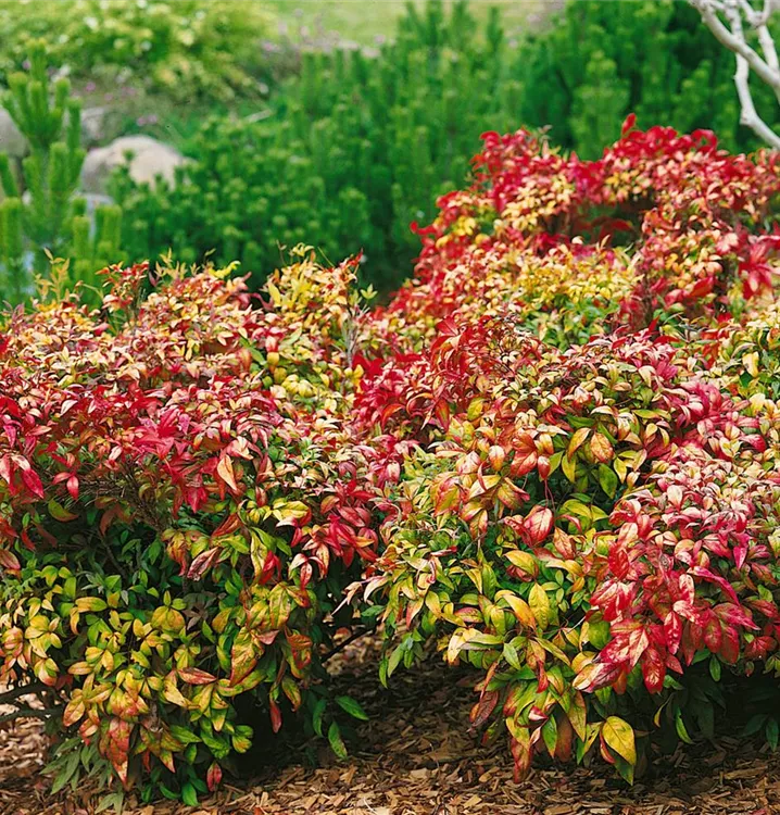 Besonders dekorativ sind die roten Früchte von Nandina domestica. Diese erscheinen ab Oktober.