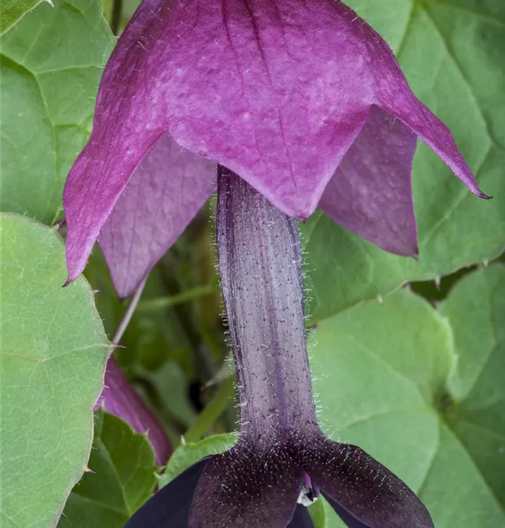 Der Rosenkelch (Rhodochiton atrosanguineum) ist eine sehr beliebte Kübelpflanze. Seine dekorativen Blüten erscheinen von Juni bis Oktober. Verwenden Sie bevorzugt die spezielle Kübelpflanzenerde, denn sie verdichtet sich über längere Zeit nicht.