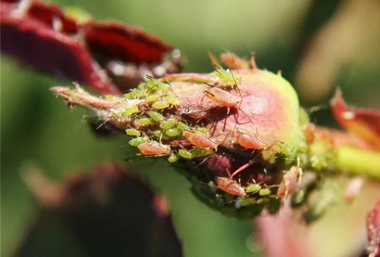 An Rosen schädigt hauptsächlich die Rosenblattlaus. Durch die hohe Vermehrungsrate der Blattläuse kann es bei warmer Witterung zu explosionsartiger Massenvermehrung kommen. Die Tiere überwintern als Ei an den Rosen.