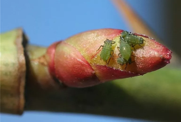 Schon im Spätwinter, wenn die Rosen noch knospig sind, können die ersten Blattlauslarven aus den schwarzen Eiern schlüpfen. Zur Massenvermehrung des Schädlings kommt es dann aber erst bei höheren Temperaturen im Frühjahr.