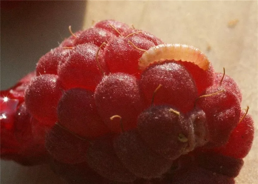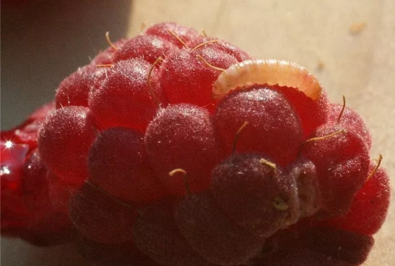 Die so genannten Maden sind die Larven des Himbeerkäfers (Byturus tomentosus). Im Mai schlüpfen die Käfer aus ihren Überwinterungsverstecken und fressen anfänglich an den Knospen der Himbeere. Im Juni sind die ca. fünf Millimeter langen, braunen Käfer oft an Blütenknospen und geöffneten Blüten zu finden. Sie legen ihre Eier an die Staubgefäße geöffneter Blüten.