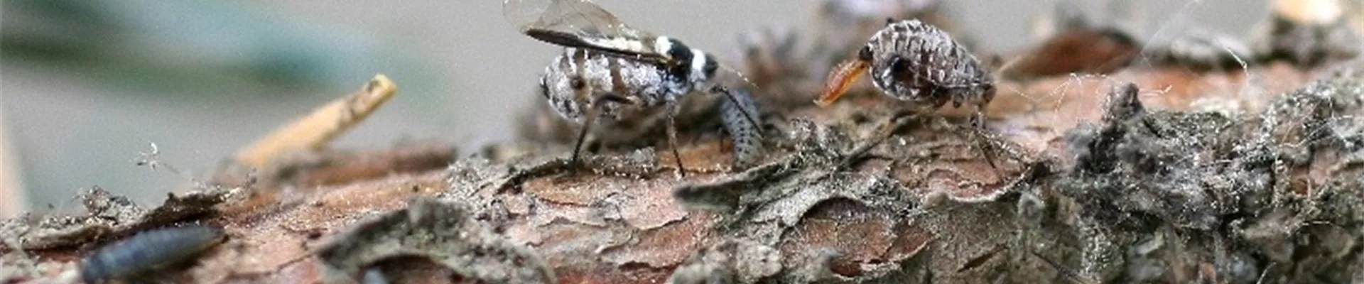 Die Rinden- oder Baumläuse gehören zur großen Gruppe der Blattläuse. Sie sind auffällig groß und meist von dunkelbrauner bis schwarzer Farbe. Daher werden sie häufig auch für kleine Käfer gehalten.
