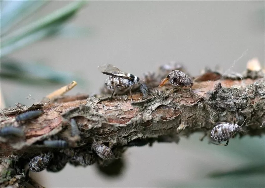Meist treten Rindenläuse an großen Nadelbäumen auf, an denen eine Bekämpfung mit der Pflanzenschutzspritze schnell an ihre technisch machbaren Grenzen stößt. Ist in Ausnahmefällen eine Bekämpfung erforderlich, sollten nur bienenungefährliche Mittel zum Einsatz kommen.