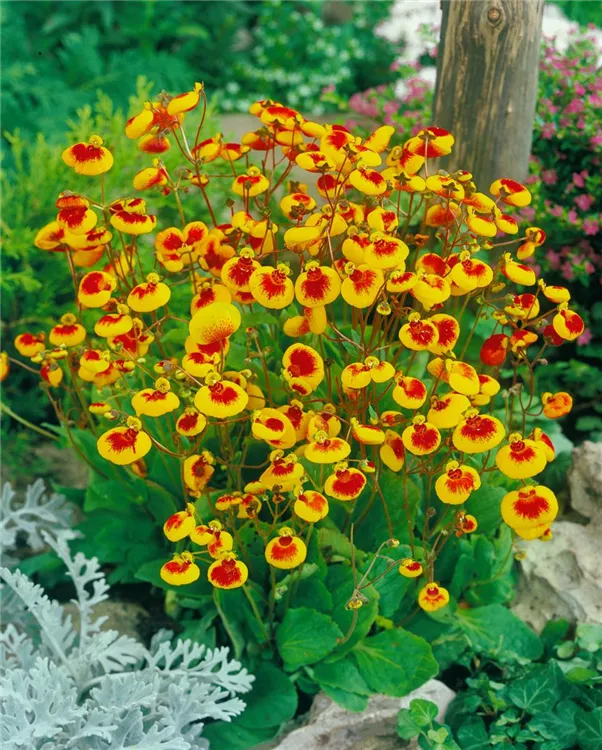 Die Pantoffelblume (Calceolaria uniflora) ist eine beliebte Pflanze für den Balkon. Die unzähligen Blüten erscheinen, je nach Sorte, in verschiedenen Farben die ganze Saison hindurch. Ein halbschattiger Standort und ein durchlässiges Substrat werden bevorzugt.