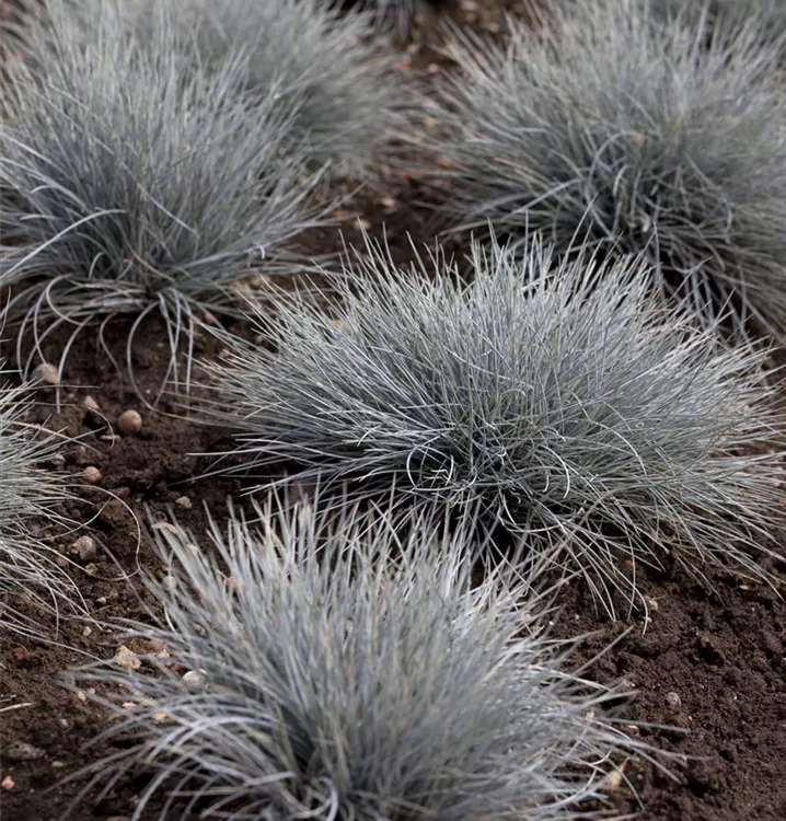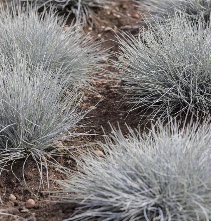 Der Blau-Schwingel (Festuca cinerea) ist mit seiner blau-grauen Blattfärbung ein dekoratives Gestaltungselement im Garten, welches sich an einem sonnigen Standort mit einem möglichst durchlässigen, sandigen Boden am wohlsten fühlt. Die cremeweißen Blütenwedel schmücken die kompakt und polsterbildend wachsende Pflanze ab Sommer. Bei günstigen Bedingungen erreicht dieses winterharte Gras eine Höhe von ca. 25 cm und wird bis zu 30 cm breit.