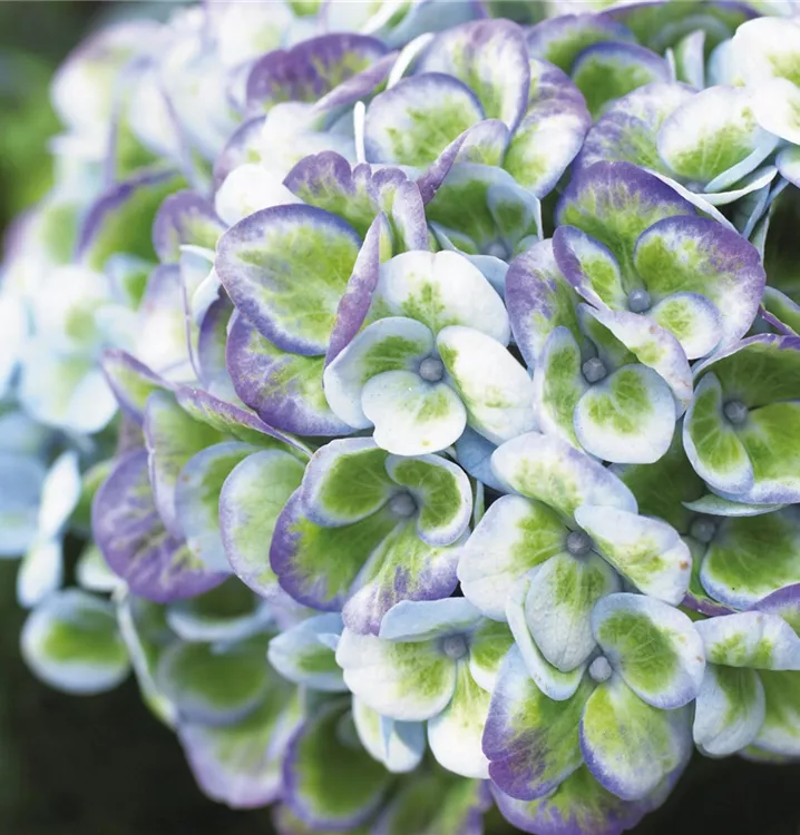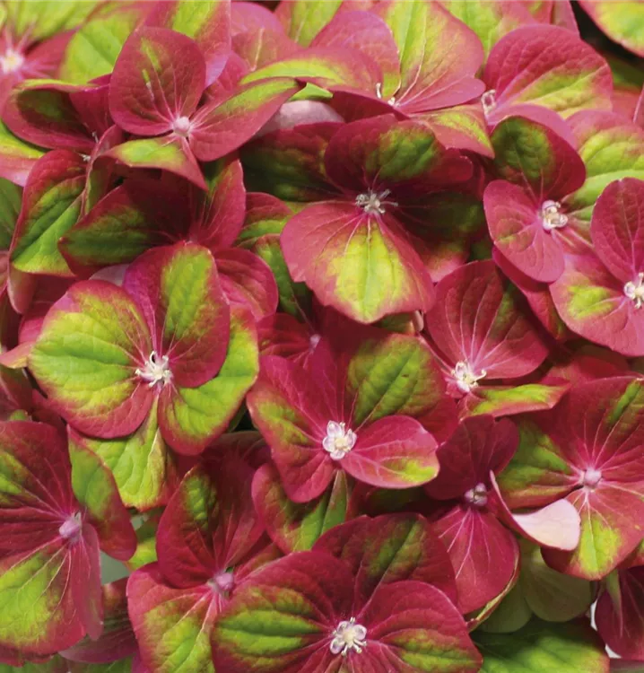 Den unverwechselbaren Charme ungeahnt herrlicher Hortensien-Blüten gepaart mit einem außergewöhnlichem Farbspiel zierlicher Blütenkronen – das ist Hydrangea 'Magical'<sup>®</sup> Four Seasons! Die zarten Einzelblüten stehen zu gattungstypischen Infloreszenzen zusammen und vollziehen im Verlauf ihrer Blütezeit einen spektakulären Farbwechsel, bevor sie sich in den leuchtendten Herbstfarben darbieten! Eine einzigartige Schönheit, die überall zum Blickfang wird!