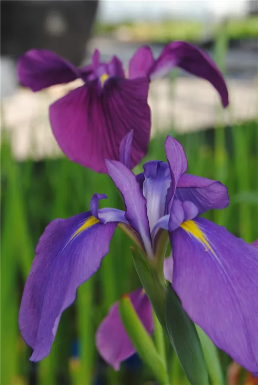 Die Japanische Sumpf-Schwertlilie (Iris ensata) ist eine rhizombildende Staude, die von Juni bis Juli violette Blüten bildet. An einem sonnigen Standort mit humosem, kalkfreiem Boden erreicht sie gewöhnlich eine Höhe von ca. 90 cm und wird ca. 50 cm breit. Die Japanische Sumpf-Schwertlilie ist an geschützten Standorten gut frostverträglich.
