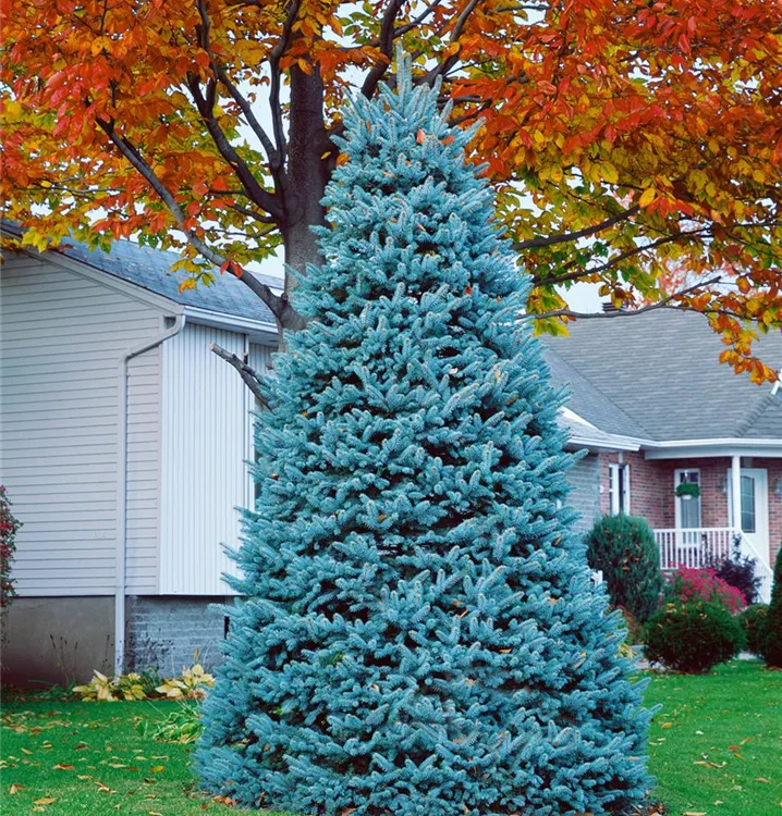 Blaue Stechfichte 'Glauca' ist ein kegelförmig wachsender Baum. Sie erreicht gewöhnlich eine Höhe von 15 - 20 m und wird ca. 6 - 8 m breit. Rasch wachsend. In der Regel wächst sie 20 - 30 cm pro Jahr.