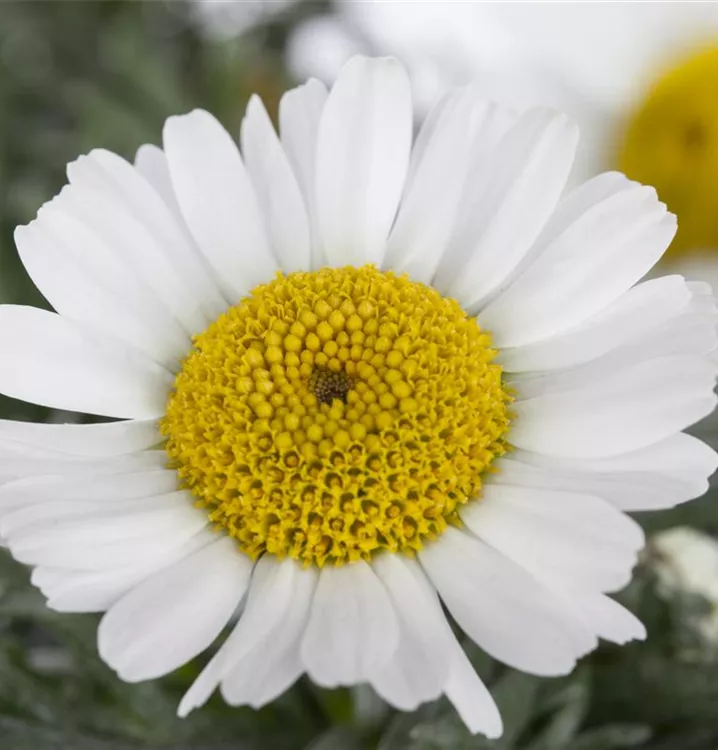 Leucanthemum hosmariense bildet radförmige, weiße Blüten ab März.